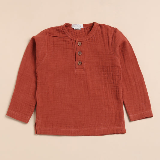 Picante + Olive Organic Muslin Long Sleeve Henley Tshirt With Lounge Pant Set