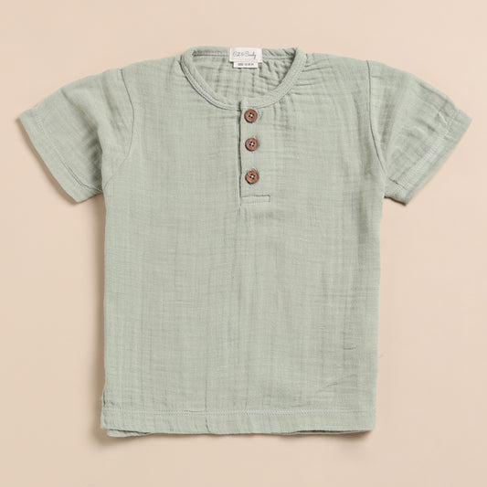 Sage + Oatmeal Organic Muslin Short Sleeve Henley Tshirt With Lounge Pant Set