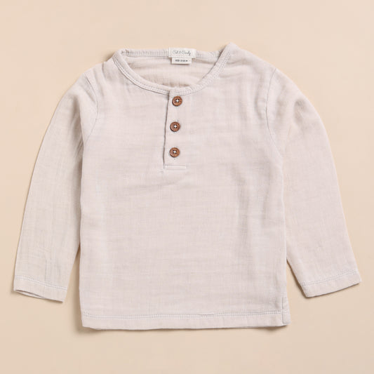 Oatmeal + Latte Organic Muslin Long Sleeve Henley Tshirt With Lounge Pant Set