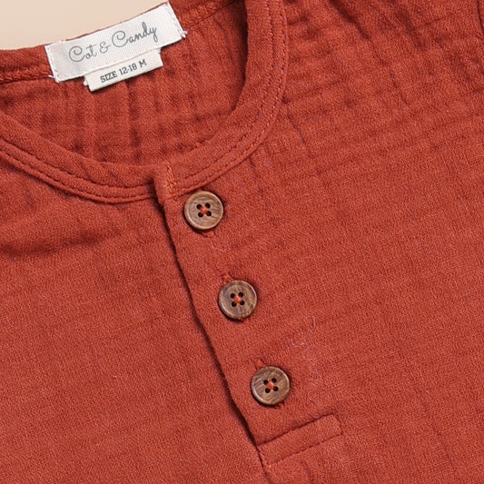 Picante + Latte Organic Muslin Henley Short Sleeve Tshirt with Lounge Pant Set