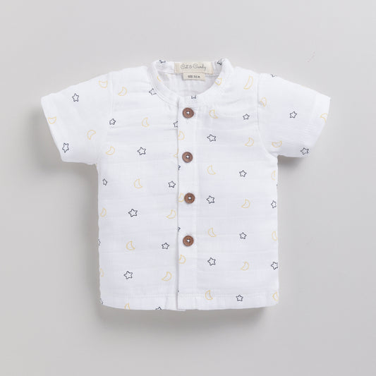 Latte + Cocoa Whisper Organic Muslin Short Sleeve Henley T-shirt With Lounge Pant Set