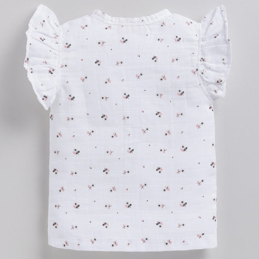 Oatmeal Organic Muslin Sleeveless Frill Top