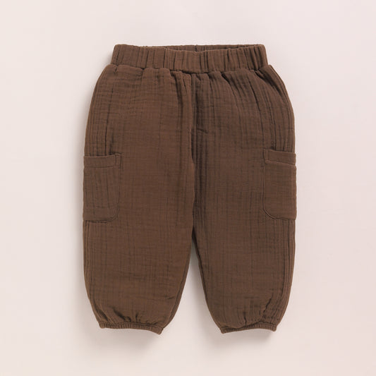 Cocoa Whisper + Oatmeal Organic Muslin Short Sleeve Henley T-shirt With Lounge Pant Set