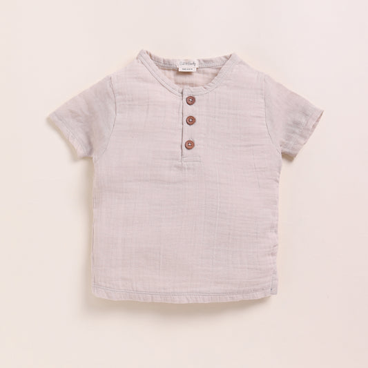 Oatmeal + Cocoa Whisper Organic Muslin Short Sleeve Henley T-shirt With Lounge Pant Set