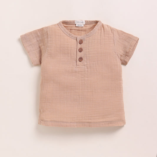 Latte + Cocoa Whisper Organic Muslin Short Sleeve Henley T-shirt With Lounge Pant Set