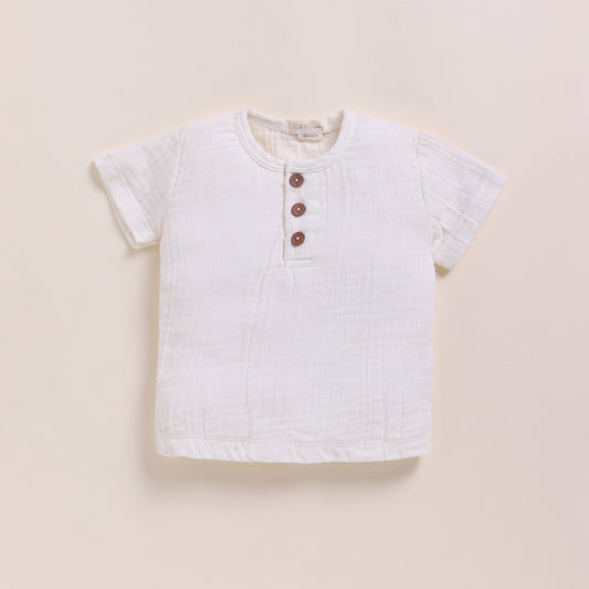 Cocoa Whisper Organic Muslin Short Sleeve Henley T-shirt With Lounge Pant Set