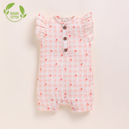 Strawberry + Spring Floral Organic Muslin Half Romper Pack Of 2
