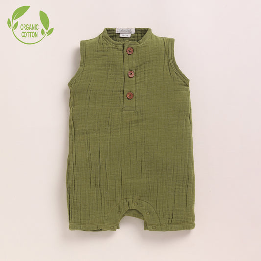 Olive + Pistachio Cream Organic Muslin Half Romper Pack Of 2