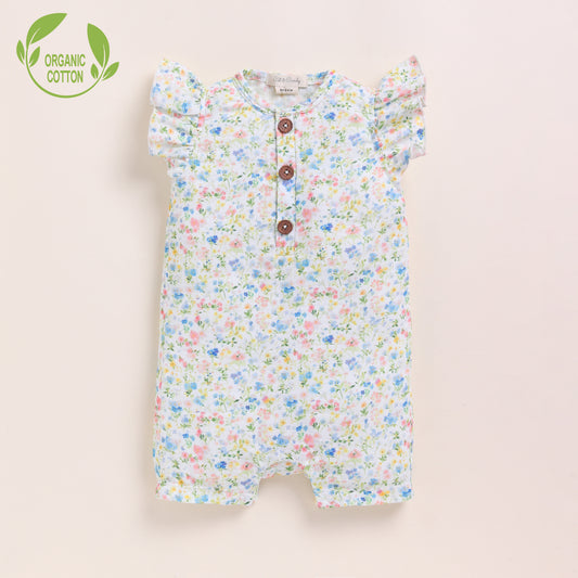 Strawberry + Spring Floral Organic Muslin Half Romper Pack Of 2