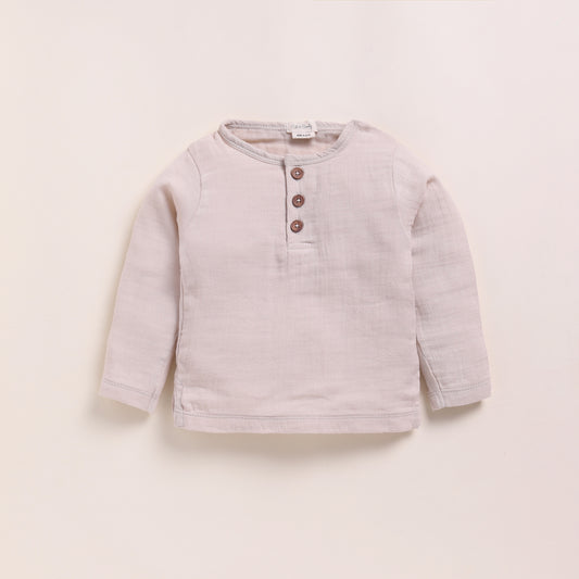 Oatmeal + Cocoa Whisper Organic Muslin Long Sleeve Henley Tshirt With Lounge Pant Set