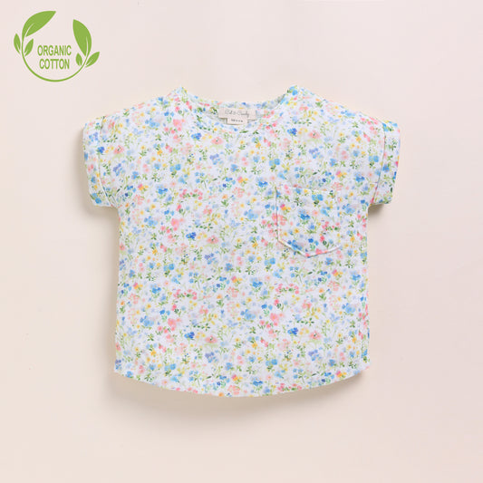 Spring Floral + Sage Organic Muslin Oversized Tee With Muslin Shorts