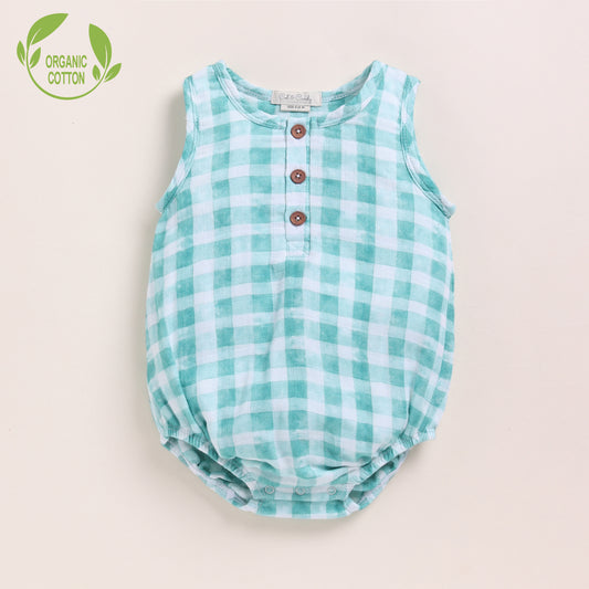 Teal Check + Sage Check Organic Muslin Bubble Romper Pack Of 2
