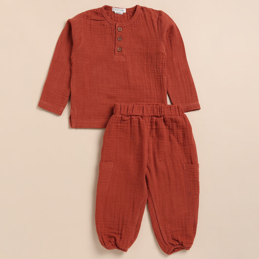 Picante Organic Muslin Long Sleeve Henley Tshirt With Lounge Pant Set