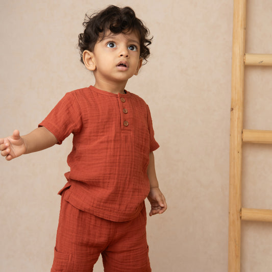 Picante Organic Muslin Short Sleeve Henley Tshirt With Lounge Pant Set