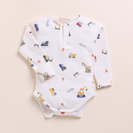 White + Construction Print Organic Long Sleeve Bodysuits - Pack of 2