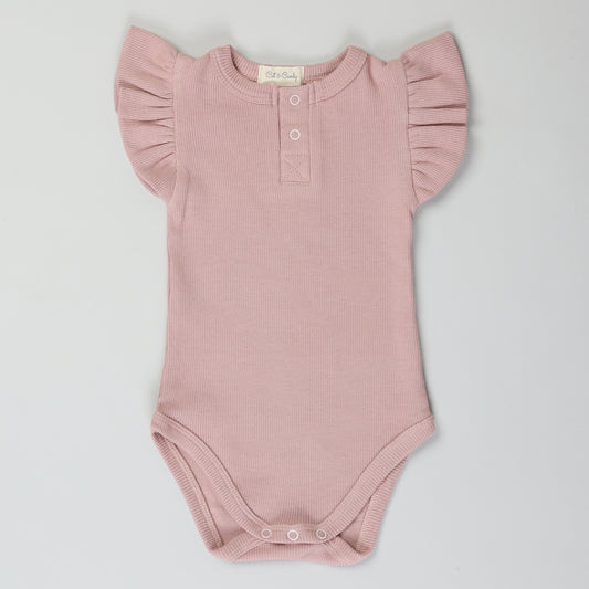 Berry Organic Short Sleeve Bodysuit With Leggings and Latte Rattle Toy