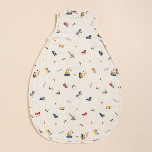 Denim Organic Long Sleeve Bodysuit With Construction Sleeping Bag