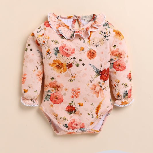 White Organic Long Sleeve Bodysuit With Vintage Floral Leggings, Headband and Bib