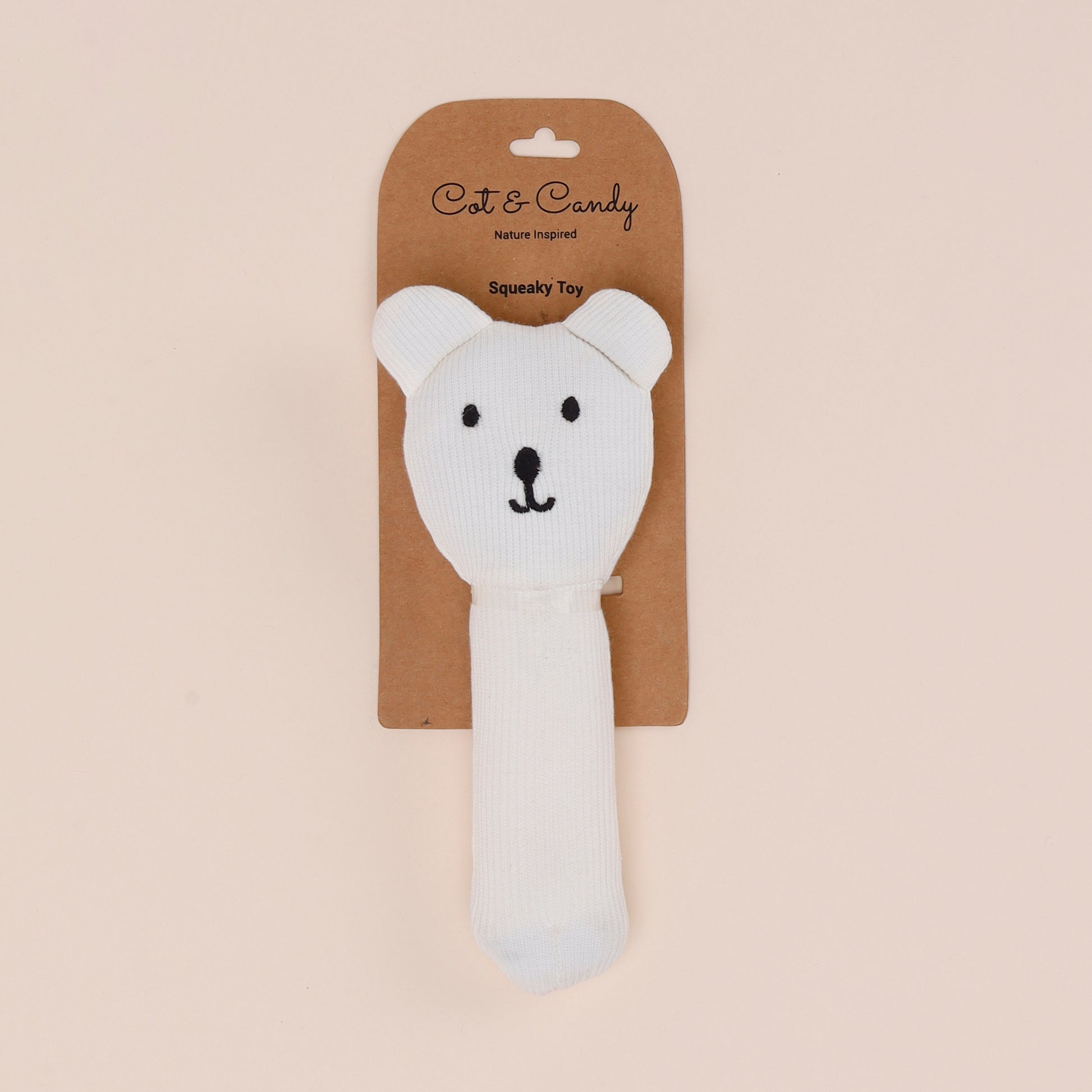 With its cheerful design and engaging squeak, our Baby Squeaky Toy stimulates auditory and tactile senses while promoting fine motor skills development. Bring joy to your baby's playtime with our lovable squeaky companion, crafted with love and care for endless moments of giggles and smiles.
