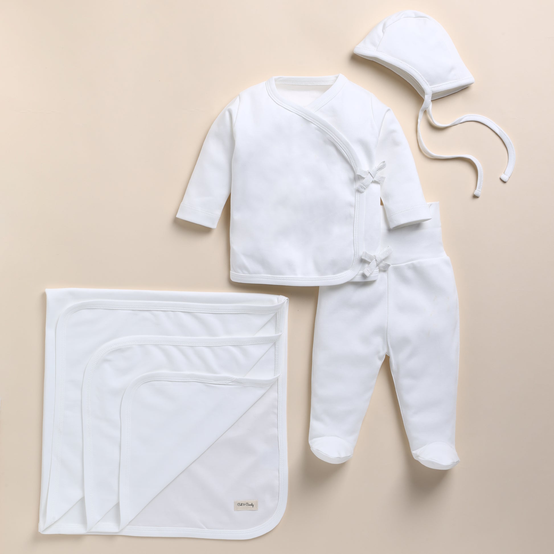 Our Homecoming Set is curated to make it even more magical. Picture your little one swaddled in a cozy organic cotton blanket, nestled in a tender embrace. It is crafted from the softest organic cotton, ensuring a gentle touch against your baby's delicate skin. Every piece is free from harmful chemicals, allowing your little one to bask in the purest comfort.