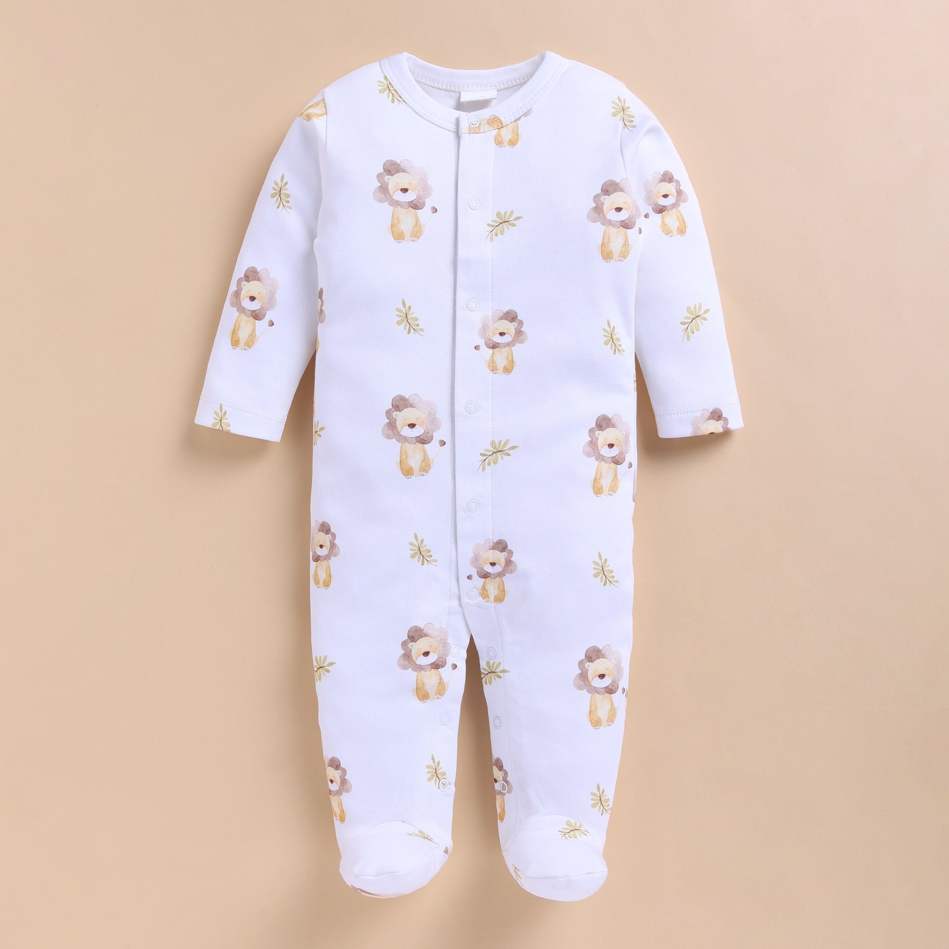 The long sleeve bodysuit features a front placket with snap buttons for easy dressing, a diaper-friendly leg opening, and in-built scratch-less mitten cuffs up to size 6 months. The organic sleepsuit is designed for fuss-free changes with practical snap button fastenings and a relaxed fit that supports restful sleep and easy movement.