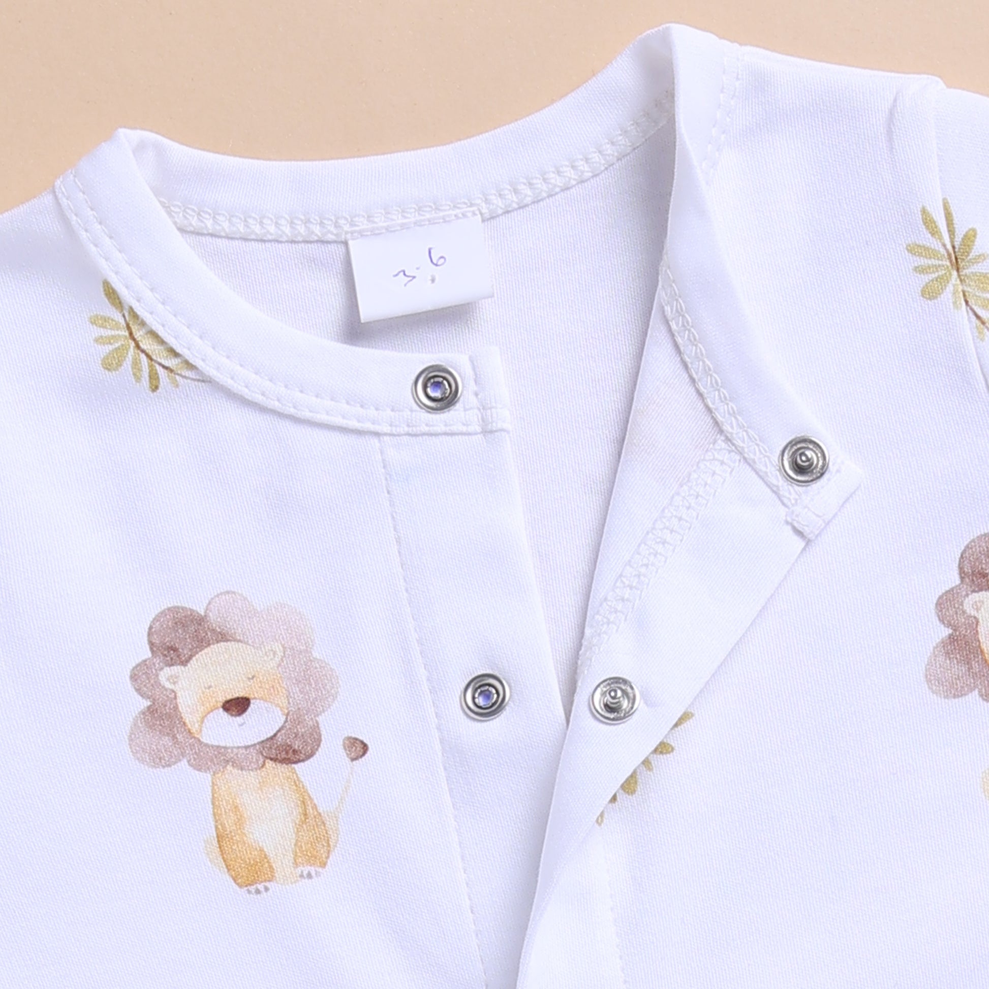 Practical snap button fastenings make dressing and nappy changes quick and fuss-free, while the relaxed fit allows for easy movement and restful sleep. Crafted with care and durability in mind, this sleepsuit is ideal for both sleep and play.