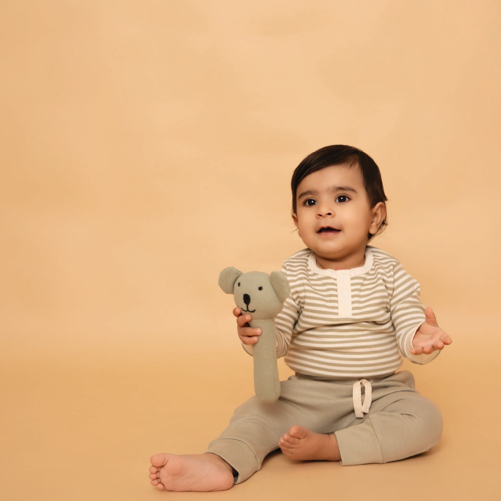 Thoughtfully created keeping in mind the sensitive skin of babies, our long-sleeve bodysuits are made from the softest quality cotton ribbed fabric, which is GOTS certified.