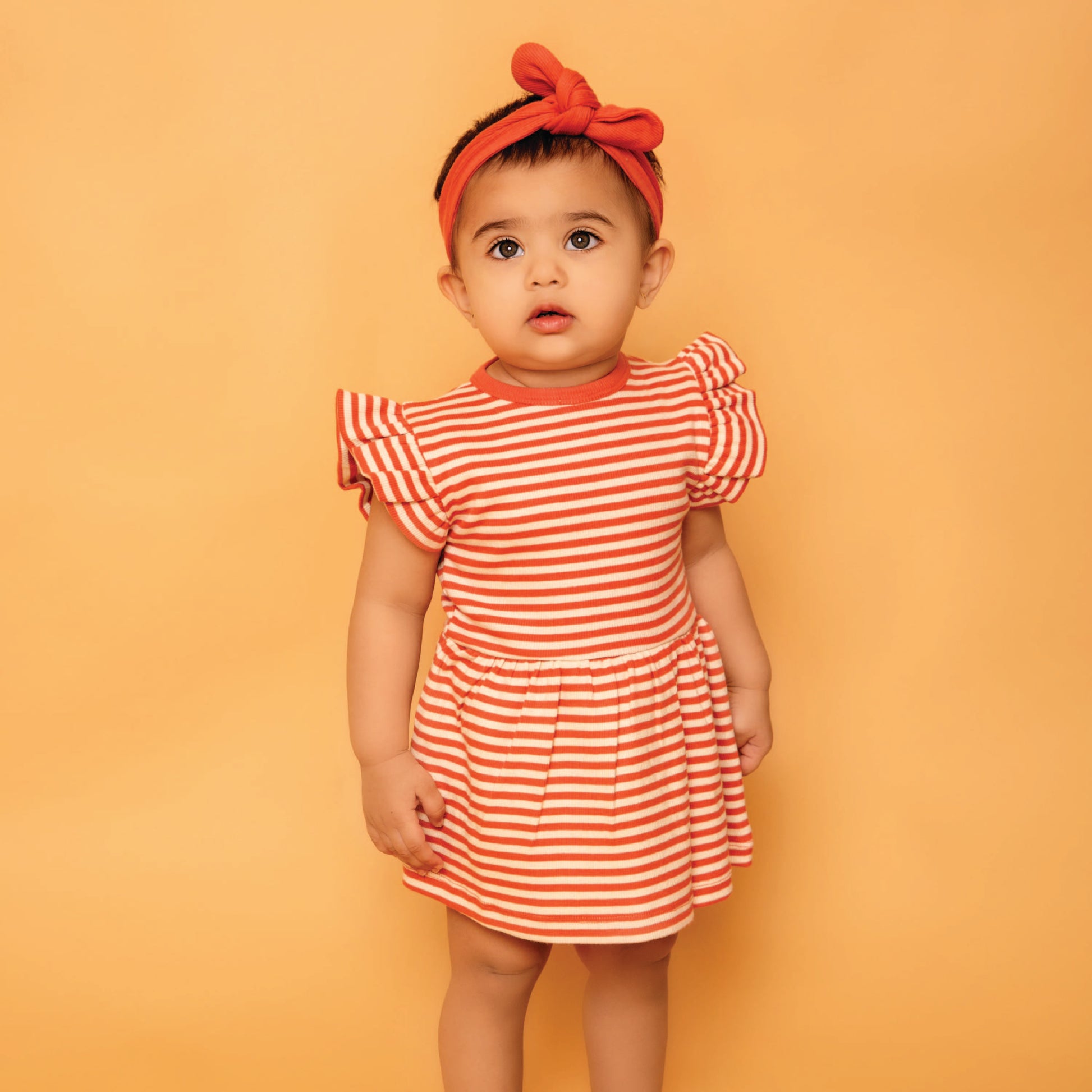 Berry Stripe Organic Short Sleeve Dress With Frill
