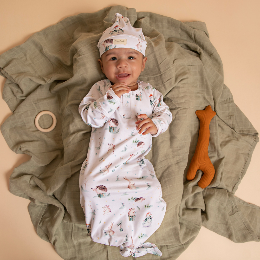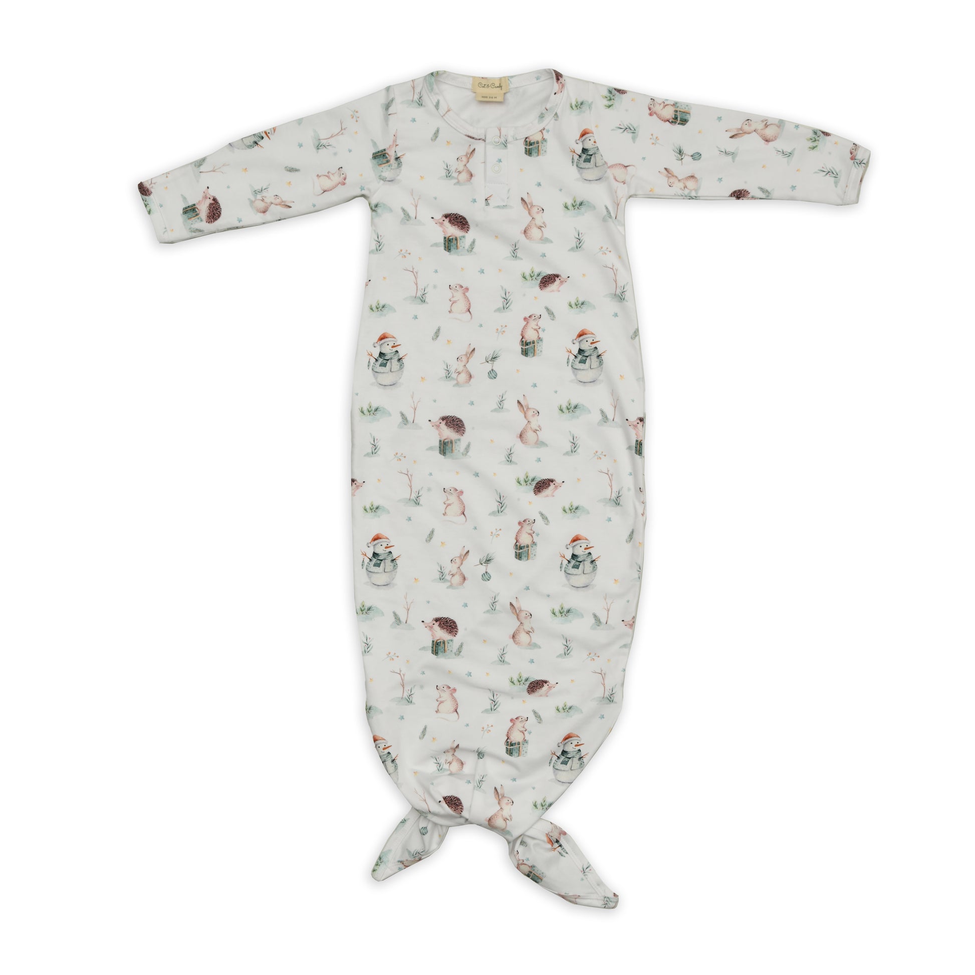 The easiest tie-bottom outfit for day or night, made for hassle free diaper changes and gentle dressing. Designed with functionality and sound sleep the baby knotted gown are perfect companion for your baby.