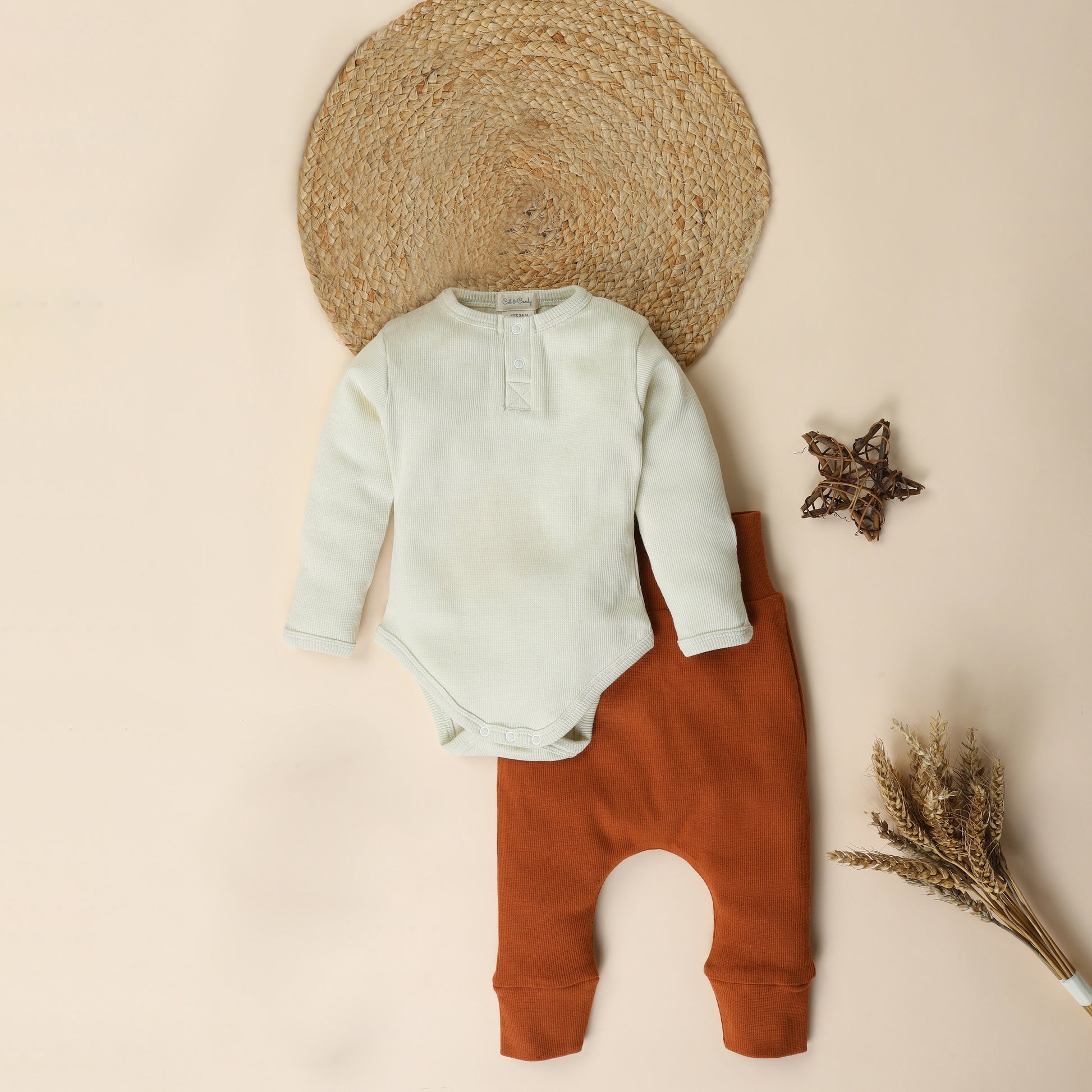 Thoughtfully created keeping gentle skin of babies in mind, our long sleeve bodysuits are made from softest quality cotton ribbed fabric which are GOTS certified.