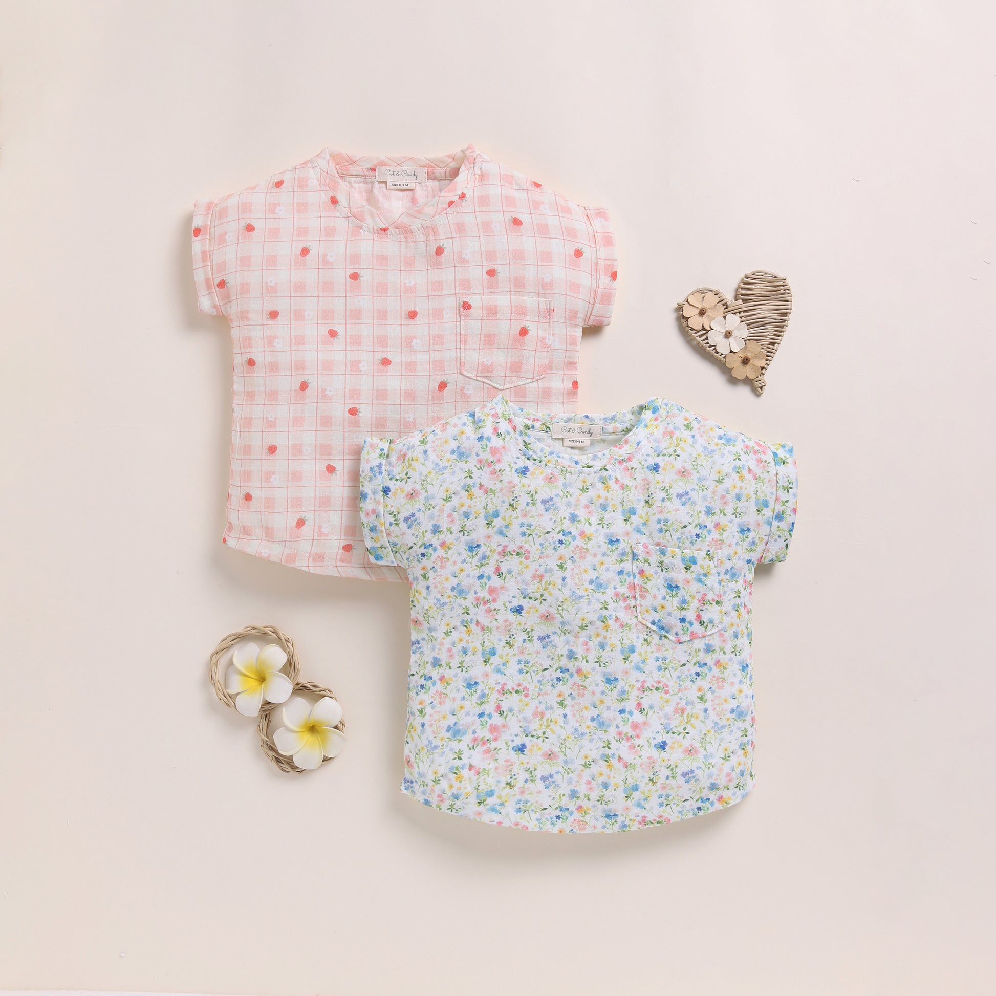 Strawberry + Spring Floral Organic Muslin Oversized Tees Pack Of 2