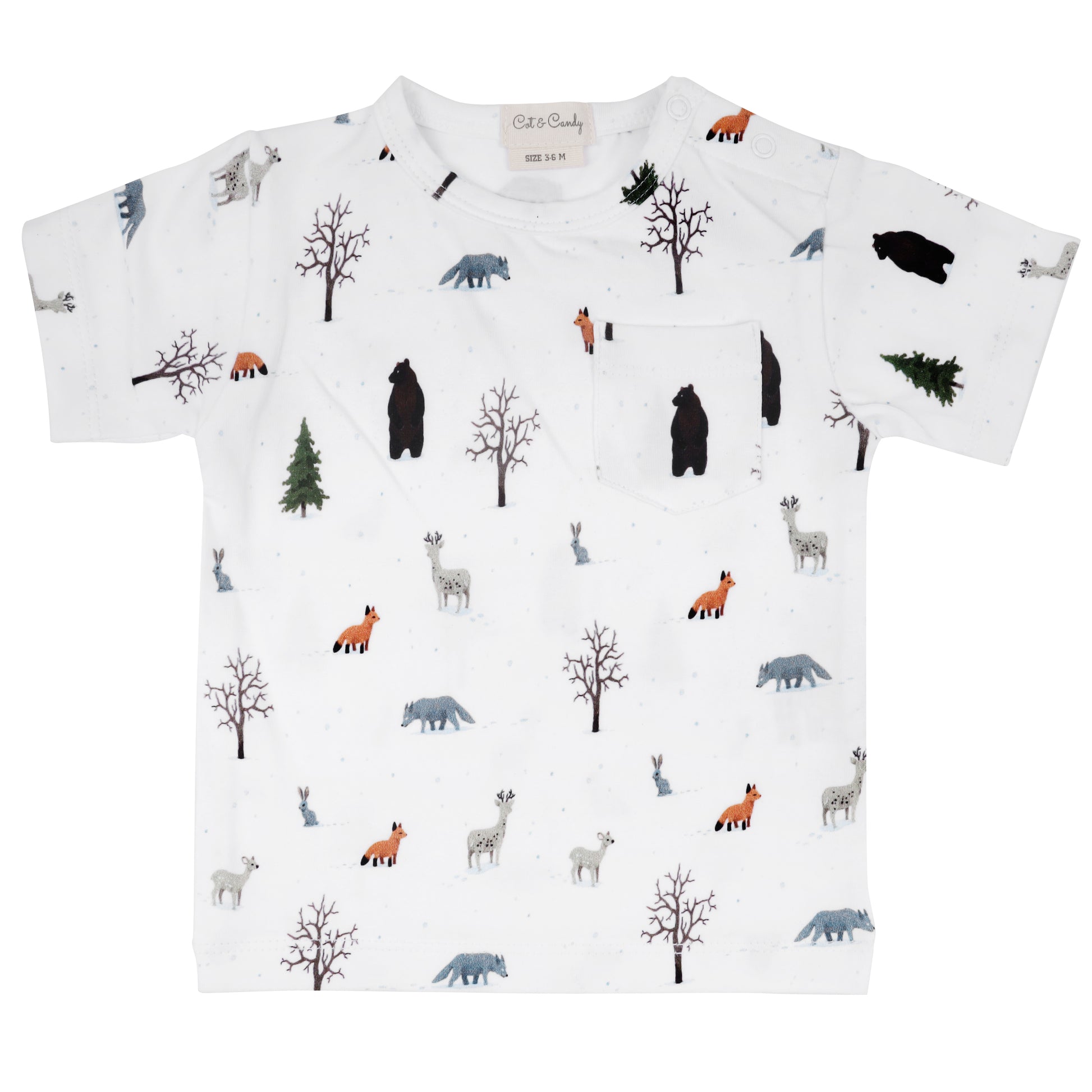 The Wild Forest one-of-a-kind tee features snaps in the front for ease of the Mum to put on the garment. The front pocket design gives a stylish and chic effect to your baby's everyday look.